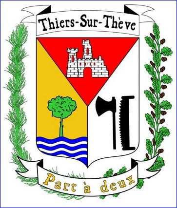 Tiercé en pairle: au 1er de gueules au château donjonné ruiné d'argent maçonné de sable, ouvert et ajouré du champ, au 2e d'or à l'arbre de sinople posé sur une champagne ondée d'azur chargée de trois burelles ondées d'argent, au 3e d'argent à la cognée de sable senestrée d’une scie passe-partout du même posée en pal.
