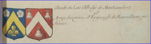 Blason de Claude du Lac, seigneur de Montisambert (à gauche).