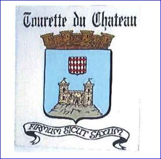 D'azur au château à deux tours couvertes et girouettées d'argent, posé sur un rocher du même et surmonté d'un écusson fuselé d'argent et de gueules.