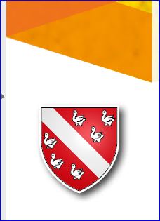 De gueules à la bande d'argent accompagnée de six merlettes du même ordonnées en orle; à la filière d'argent.