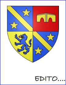 Écartelé: aux 1er et 4e d'azur à la bande d'or accompagnée de deux étoiles du même, au 2e de gueules au pont de deux arches d'or maçonné de sable, au 3e d'or au loup ravisant d'azur armé et lampassé de gueules.