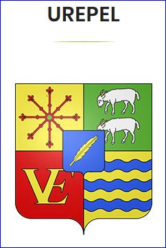 (2002) Écartelé: au 1er d'or à l'escarboucle pommetée et fleuronnée de gueules, allumée de sinople, au 2e de sinople à deux moutons au naturel accornés d'or passant l'un au-dessus de l'autre, au 3e de gueules aux initiales accolées « VE » d'or, au 4e d'or à trois fasces ondées d'azur; sur le tout, d'azur à la plume d'or posée en barre.