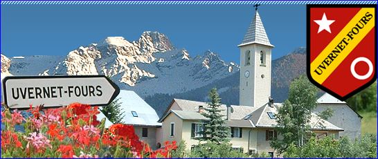 De gueules à la barre d'or chargée de l'inscription « UVERNET - FOURS » en lettres capitales de sable, accompagnée en chef d'une étoile et en pointe d'un annelet, le tout d'argent.