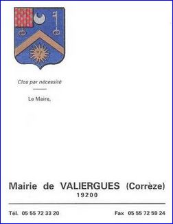 (1985) D'azur au chevron d'or, surmonté d'un croissant d'argent accosté de deux clefs affrontées d'or et soutenu d'un soleil du même; au franc-canton échiqueté de gueules et d'argent de six tires.