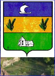 Tiercé en fasce: au 1er d'azur à la barque habillée d'argent, au 2e d'or chargé en flancs de deux bouquets de deux épis de blé feuillés de sinople, au 3e de sinople à l'église du lieu d'argent.