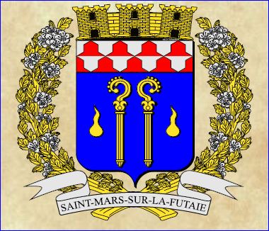 (1999) D'azur à deux crosses adossées d'or, accostées de deux larmes du même; au chef vairé d'argent et de gueules.