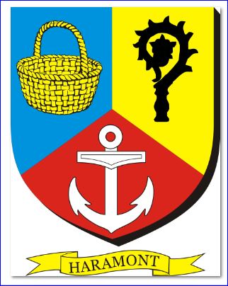 (2017) Tiercé en pairle renversé: au 1er d'azur au panier d'osier d'or, au 2e d'or à la volute de crosse de sable, au 3e de gueules à l'ancre d'argent.