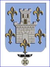 D'azur à la tour donjonnée d'argent, maçonnée et ajourée de sable, et accompagnée de cinq fleurs de lis d'or, deux sur chaque flanc et une en pointe, cette dernière brochant sur la tour..