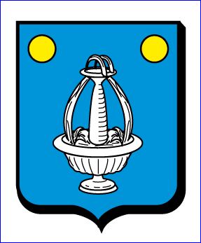 D'azur à la fontaine d'argent surmontée de deux besants d'or.