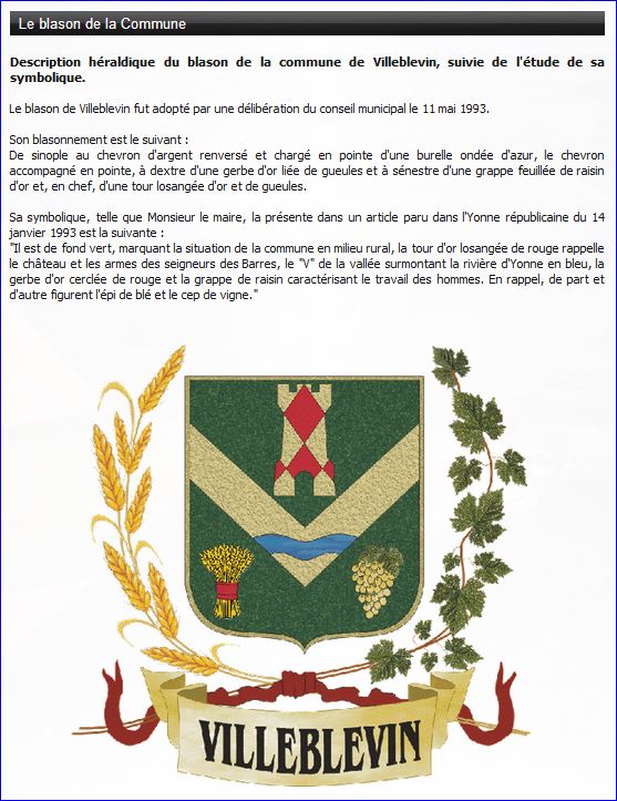 (1993) De sinople au chevron d'argent renversé et chargé en pointe d'une burelle ondée d'azur, le chevron accompagné en pointe, à dextre d'une gerbe d'or liée de gueules et à senestre d'une grappe feuillée de raisin d'or et, en chef, d'une tour losangée d'or et de gueules.