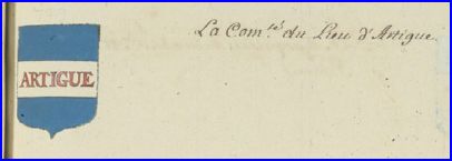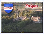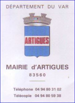 D'azur à la fasce d'argent chargée de l'inscription « ARTIGUES » en lettres capitales de gueules.