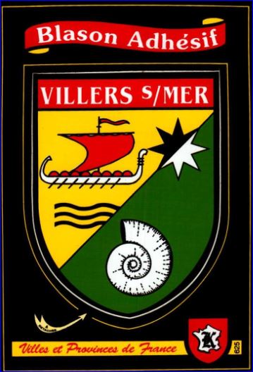(1939) Taillé: au 1er d'or au drakkar d'azur, la voile chargée de deux léopards d'argent passant l'un au-dessus de l'autre, au 2e de sinople à l'ammonite d'argent; à l'étoile de huit rais taillée d'azur et d'argent brochant en chef sur la partition.