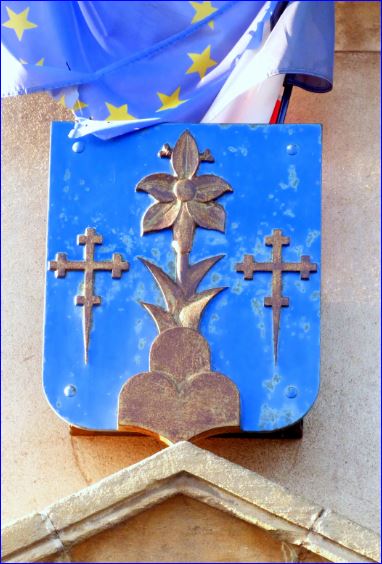 Blason sur la façade de la mairie.