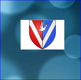 (1998) Parti: au 1er de gueules à la bande d'argent, au 2e d'azur à la barre d'argent; à la colombe d'argent volant en descendant brochant sur la partition.