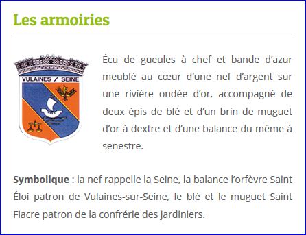 (1986) De gueules à la bande d'azur bordée d'or, chargée d'une nef d'argent voguant sur des ondes alésées d'or, accompagnée en chef d'un bouquet d'une fleur de muguet feuillée et de deux épis de blé, le tout d'or, et en pointe d'une balance du même.