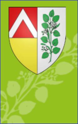 Parti: au 1er coupé au I de gueules au chevron d'argent, au II d'or plain, au 2e d'argent à la branche de tilleul au naturel.
