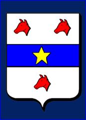 D'argent à la fasce d'azur chargée d'une étoile d'or, accompagnée de trois têtes de genette de gueules.