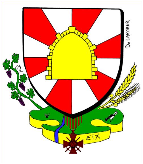 (2017) Gironné de gueules et d'argent de douze pièces, à l'entrée de tunnel en ogive et muraillée d'or brochant en coeur.