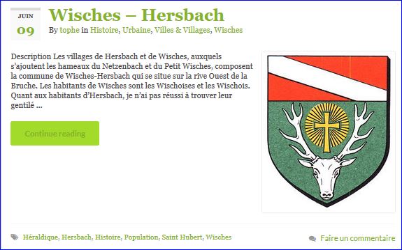 De sinople au rencontre de cerf d'argent surmonté d'une croisette latine rayonnante d'or; au chef cousu de gueules à la bande d'argent.