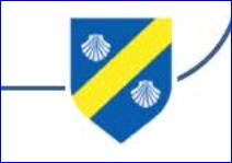 D'azur à la barre d'or accompagnée de deux coquilles d'argent.