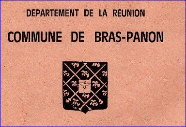 (1882) De gueules fretté de six lances d'argent, entre-semé de fleurs de vanille du même; sur le tout, d'azur chargé d'un paille-en-queue [phaéton] volant en pal d'argent.