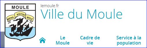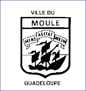 Coupé abaissé d'argent et d'azur, au navire de sable brochant, surmonté d'un listel d'or, au retroussis du champ, chargé de la devise de la commune « MENS AGITAT MOLEM » en lettres de sable; au comble d'argent chargé du nom « MOULE » en lettres de sable.