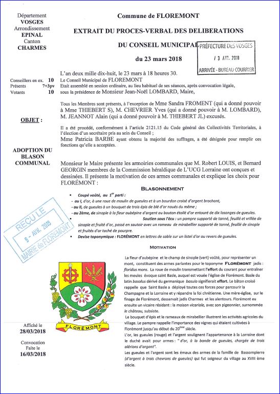 Extrait du PV de délibération du 23 mars 2018 (1/2)