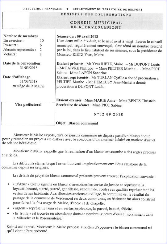 Extrait du Registre des Délibérations du 9 avril 2018 (1/2).