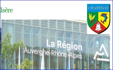 Tiercé en pairle renversé: au 1er de sinople à la branche de châtaignier de tenné, fruitée de trois pièces du même et feuillée de trois pièces d'or en chef, au 2e d'or au dauphin d’azur barbé, crêté, lorré, peautré et oreillé de gueules, au 3e de gueules à la cloche d'argent; le tout sommé d'un chef d'azur chargé de l'inscription « CHATENAY » en lettres capitales d'argent.