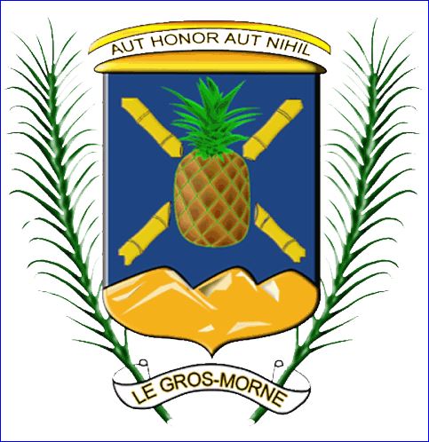 D'azur à l'ananas au naturel accompagné de quatre tiges de canne à sucre alésées d'or et ordonnées en sautoir; à la montagne de trois sommets d'or en pointe.