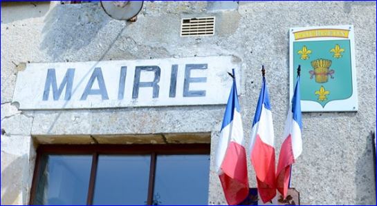 (2011) D'azur à la gerbe d'or liée de deux noeuds de gueules sur les côtés et accompagnée de trois fleurs de lis d'or.