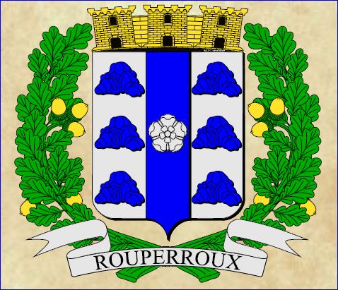 (2000) D'argent au pal d'azur chargé d'une rose du champ, accompagné de six monticules de cailloux d'azur.