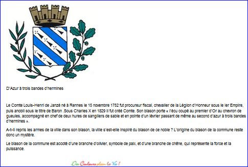 D'azur à trois bandes d'argent, chargées d'une, de trois et de deux mouchetures d'hermine de sable posées en bande.