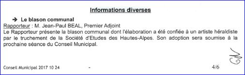 Extrait du compte-rendu du Conseil Municipal du 24 octobre 2017.