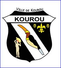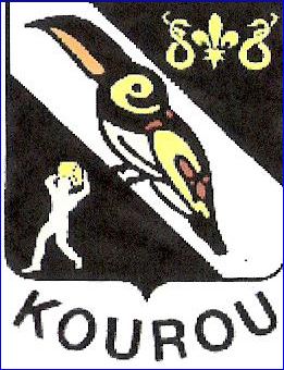 De sable à la bande d'argent chargée d'un toucan au naturel, accompagnée à dextre d'un bagnard d'argent portant un rocher d'or sur sa tête et à senestre d'une fleur de lis d'or accostée de deux serpents lovés et affrontés du même.