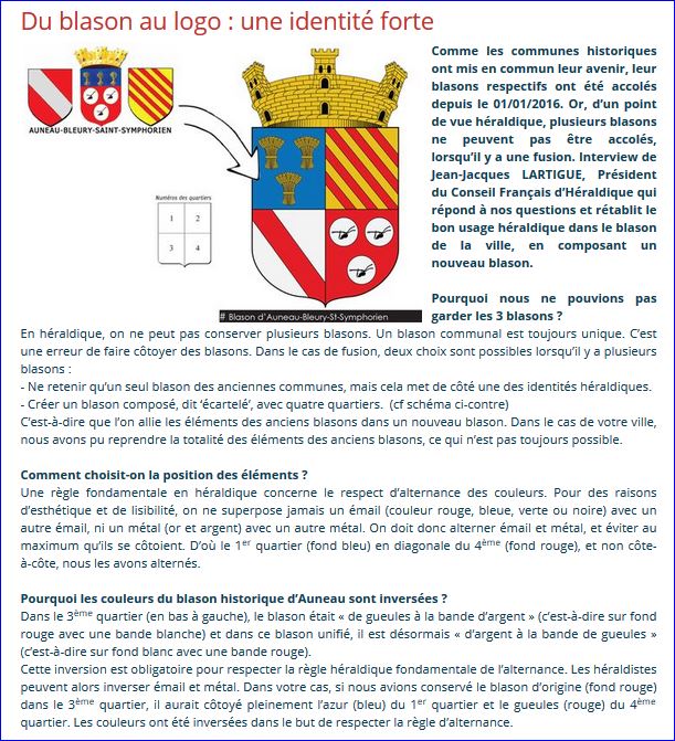 (2016) Écartelé: au 1er d'azur à trois gerbes de blé d'or, au 2e d'or à cinq cotices de gueules, au 3e d'argent à la bande de gueules, au 4e de gueules à trois besants d'argent chargé chacun d'une charrue de sable.