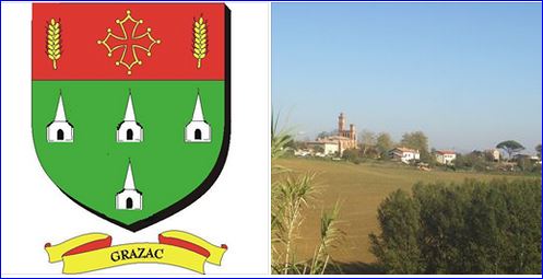 De sinople à quatre chapelles d'argent, ouvertes de sable, 3 et 1; au chef cousu de gueules chargé d'une croix cléchée, vidée et pommetée de douze pièces d'or accostée de deux épis de blé du même.