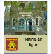De gueules à la tour d'or, ouverte, ajourée et maçonnée de sable, supportée par deux lions affrontés d'or et accompagnées des inscriptions en lettres capitales du même « GROSSETO PRUGNA » en chef et « PORTICCIO » en pointe.