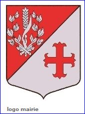 (1990) Taillé: au 1er de gueules à l'épi de blé feuillé en pal enserré par deux branches de laurier les tiges passées en sautoir en pointe et brochant sur l'épi, le tout d'argent, au 2e d'argent à la croix fleuronnée de gueules.