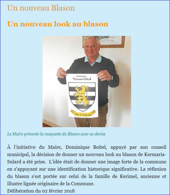 Blason sur le site de la commune, 2018.