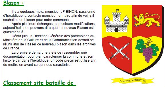 (2015) Écartelé, le trait du coupé ondé: au 1er d'or au château donjonné d'une pièce, girouetté et flanqué de deux échauguettes couvertes, le tout d'argent, ouvert, ajouré et maçonné de sable, au 2e de gueules au léopard d'or armé et lampassé d'azur, au 3e de gueules à deux épées d'argent passées en sautoir, au 4e d'or à la grappe de raisin de pourpre tigée et feuillée au naturel.