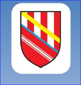 Tranché abaissé à dextre haussé à senestre: au 1er palé d'argent et de gueules, à la cotice d'or abaissée et brochante, au 2e de gueules à la cotice d'argent côtoyée de deux filets du même; à la cotice d'azur brochant sur la partition.