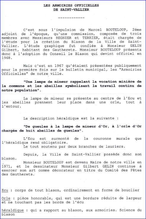 (1967) De gueules à une lampe de mineur d'or; à la bordure d'or chargée de huit abeilles de gueules.