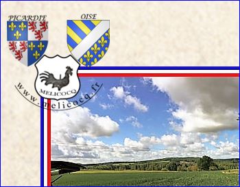 D'argent au coq de clocher contourné de sable soutenu de l'inscription « MELICOCQ » en lettres capitales du même.