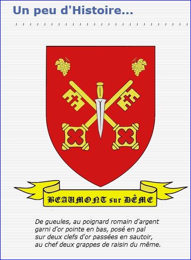 De gueules à deux clés d'or passées en sautoir et au poignard romain d'argent, garni d'or et la pointe en bas brochant, le tout accompagné aux angles du chef de deux grappes de raisin feuillées d'or.