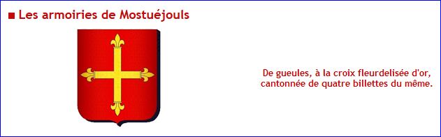De gueules à la croix fleurdelisée d'or cantonnée de quatre billettes du même.