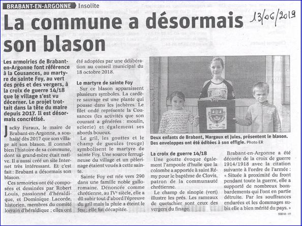 Article de presse L'Est républicain du 13 juin 2019, (détail d'une photo sur le site du journal).