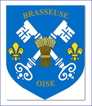 D'azur à deux clé d'argent passées en sautoir, accostées de deux fleurs de lis d'or et à la gerbe de blé du même brochant en coeur, accompagnées en chef de l'inscription « BRASSEUSE » en arc de cercle convexe et en pointe de l'inscription « OISE » en arc de cercle concave, toutes deux en lettres capitales d'or.