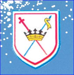 D'argent à l'épée basse de gueules posée en bande passée en sautoir avec une lance d'azur au guidon d'or, à la couronne d'or brochant en coeur; le tout enfermé dans un trécheur de gueules.