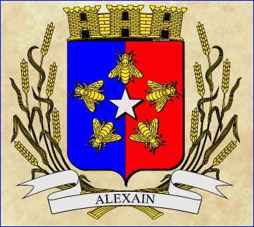 (2018) Parti d'azur et de gueules; à l'étoile d'argent, accompagnée de cinq abeilles d'or, aboutées par l'abdomen à chacune des pointes de l'étoile, brochant sur la partition.